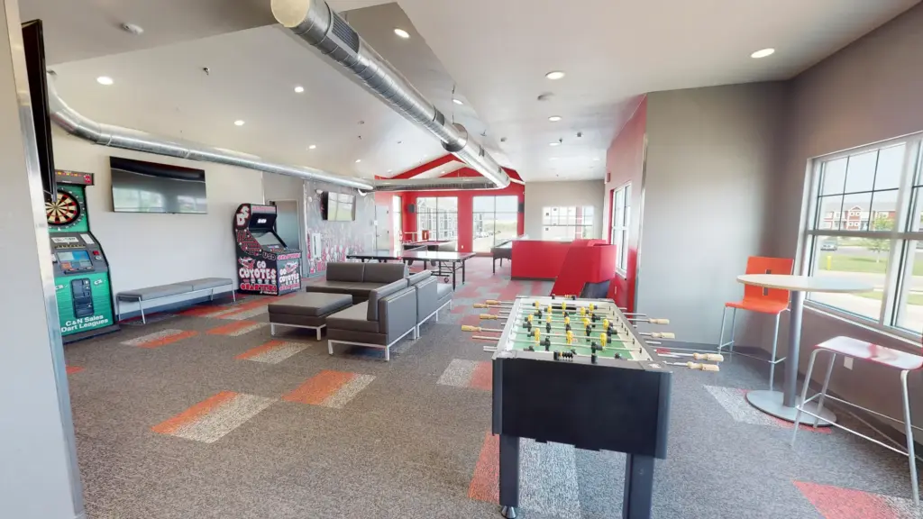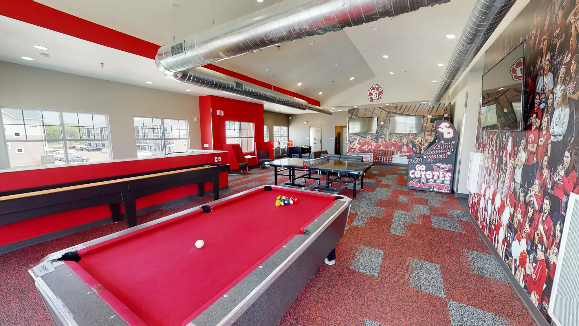 Our resort-style pool area with a year-round hot tub is the place to be when the weather heats up in Vermillion. Head to the game lounge to chill out, or get physical with a game on the volleyball courts.